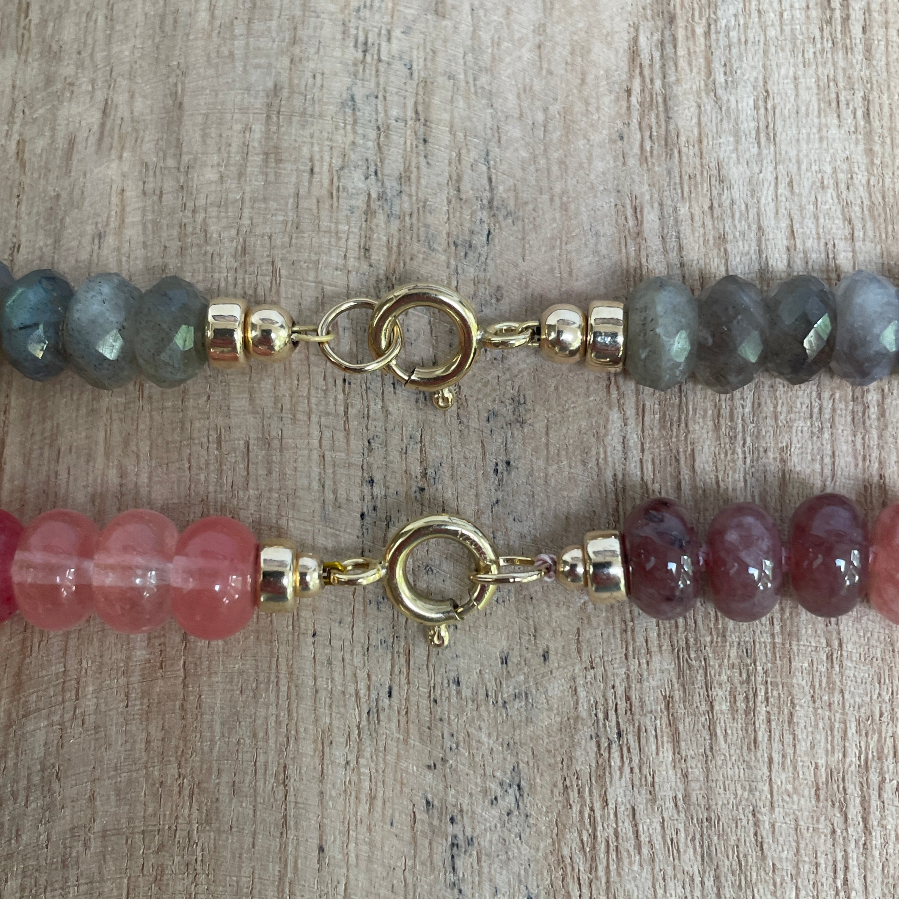 We hebben zowel gouden als zilveren sieraden. Ook kunnen we al onze edelsteen kettingen afwerken met 925 sterling zilver of met gold filled.