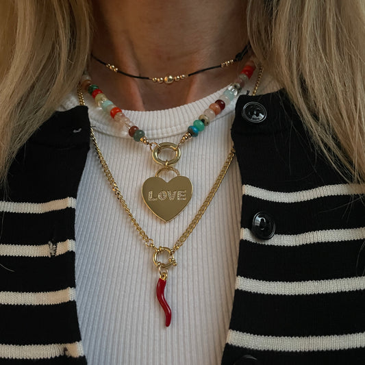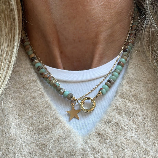 Al onze edelsteen kettingen zijn met de hand gemaakt. We kunnen ze afwerken met zilver of goud.