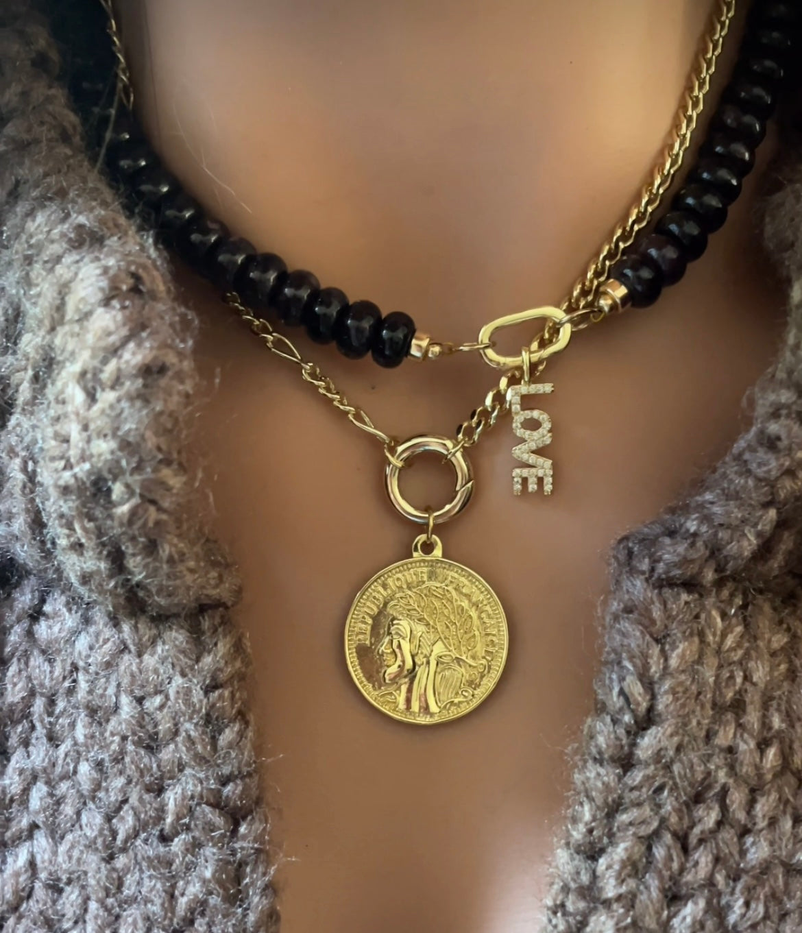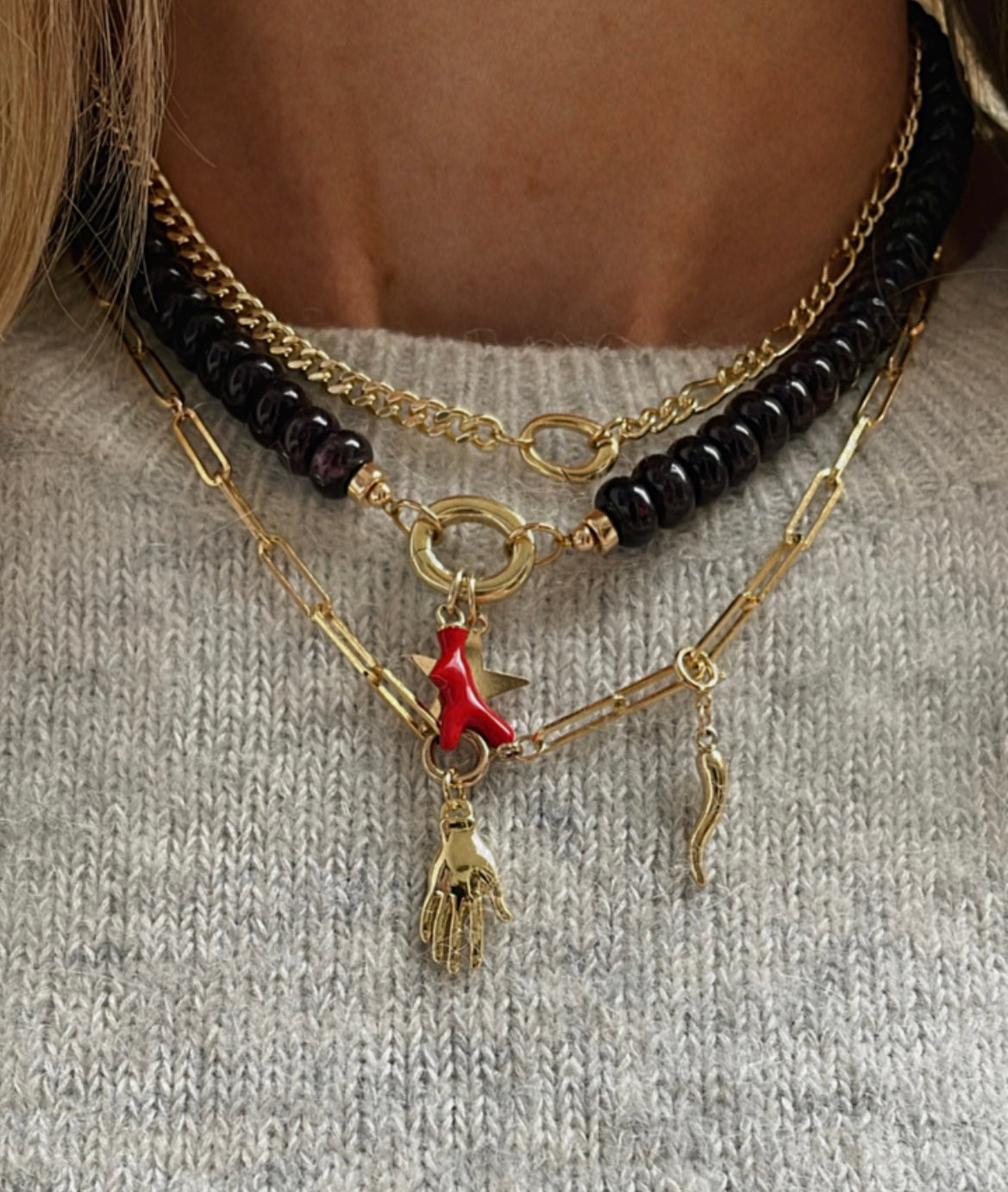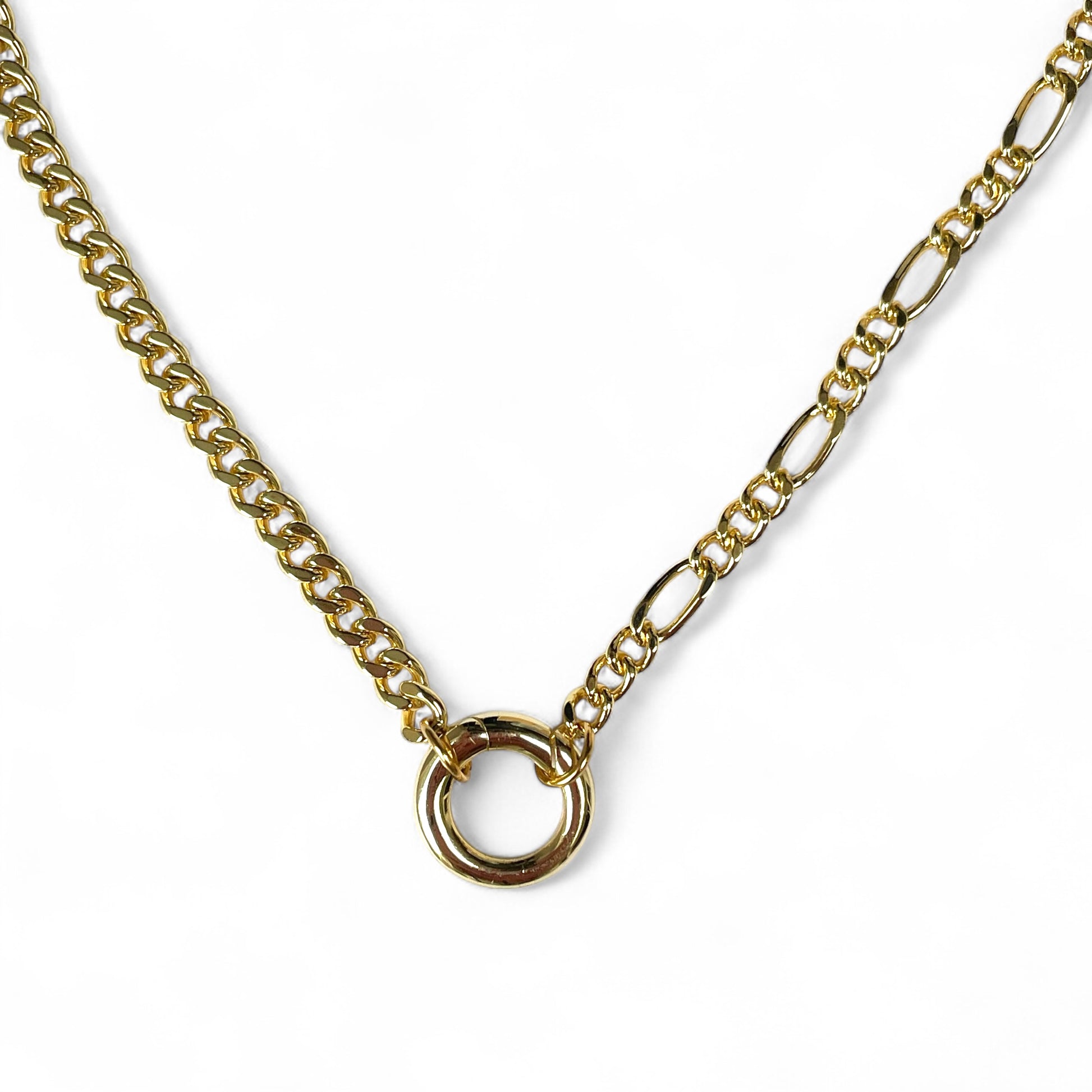 Questa collana si abbina perfettamente alle nostre collane con pietre preziose. È anche molto carina con un ciondolo. È un mix di maglia barbazzale e maglia Figaro. Se preferisci una lunghezza un po' più corta, possiamo accorciarla per te. Specifica la lunghezza desiderata nella sezione "commenti" del tuo ordine. Puoi indossarla anche con gli altri nostri connettori, come mostrato nella foto con il maglione grigio. La collana con il mini connettore ovale in questo caso è lunga 37 cm.