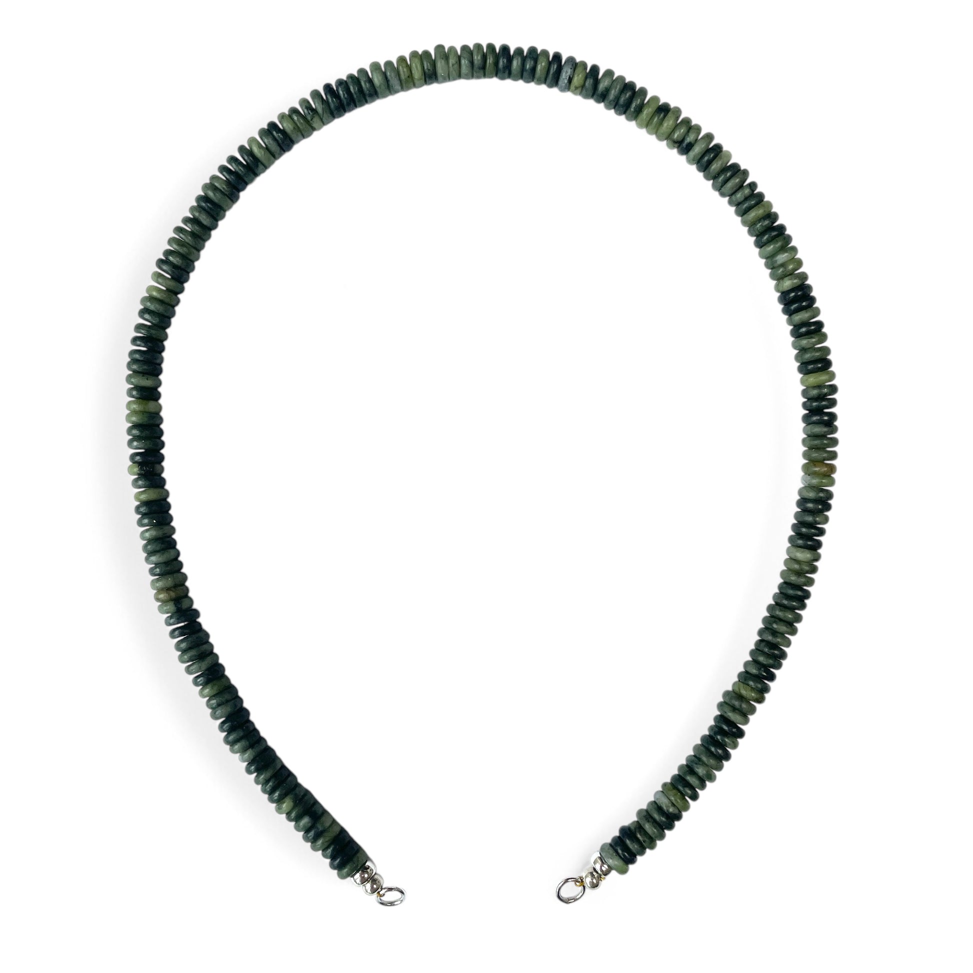 Deze ketting is gemaakt van groene jade steen. We kunnen de ketting met met een vast slotje maken of met een ringetje aan allebei de uiteinden. Voor de 2de keuze heb je wel een connector nodig om de ketting te verbinden. Zie hier onze connectoren collectie.
